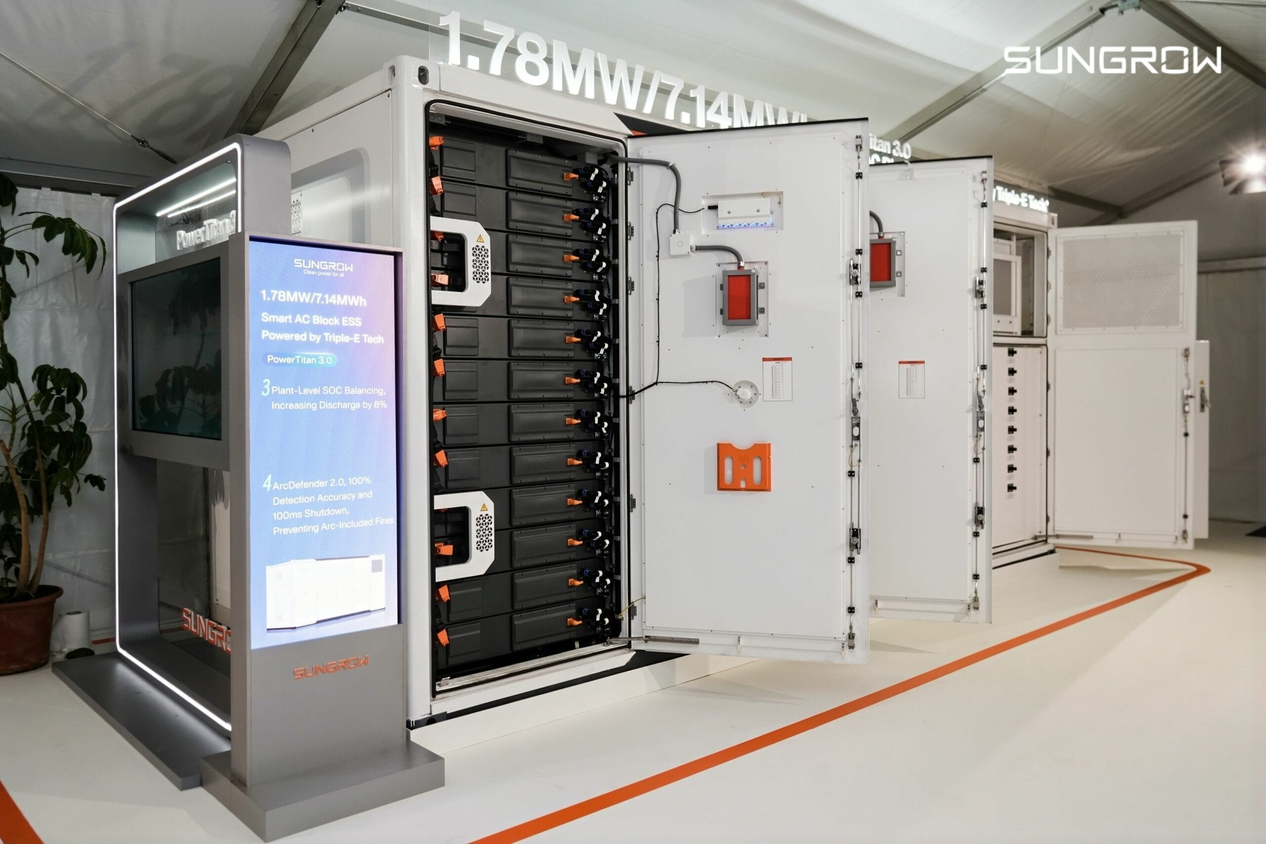 PowerTitan 3.0 fue diseñado para ser pionero a la hora de afrontar los retos de un sistema energético moderno. Un único contenedor de 20 pies integra 1,78 MW de potencia y 7,14 MWh de baterías, lo que permite una configuración de 4 horas en la que un bloque alcanza los 7,2 MW/28,5 MWh. Cuenta con celdas de batería stacked de más de 600 Ah, con una duración de entre 2 y 8 horas. Las celdas de batería stacked proporcionan mayor seguridad y eficiencia, y contribuyen a una eficiencia de ciclo completo (RTE) a nivel del sistema del 92 %.