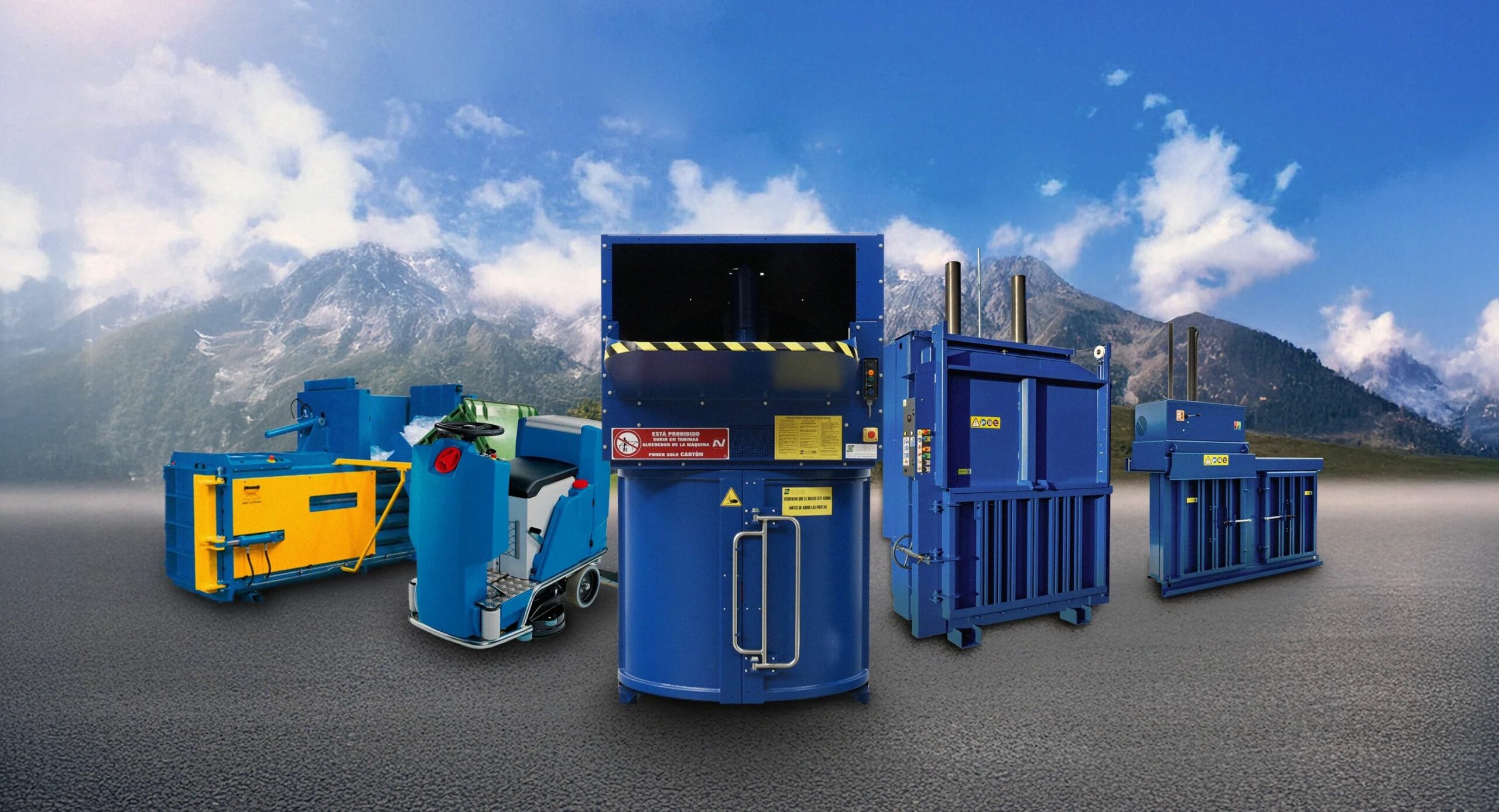 Gestión de residuos: compactadoras de cartón, rotocompactadoras (Valpak), prensas verticales y horizontales de canal continuo, prensas para latas, bidones y RSU.