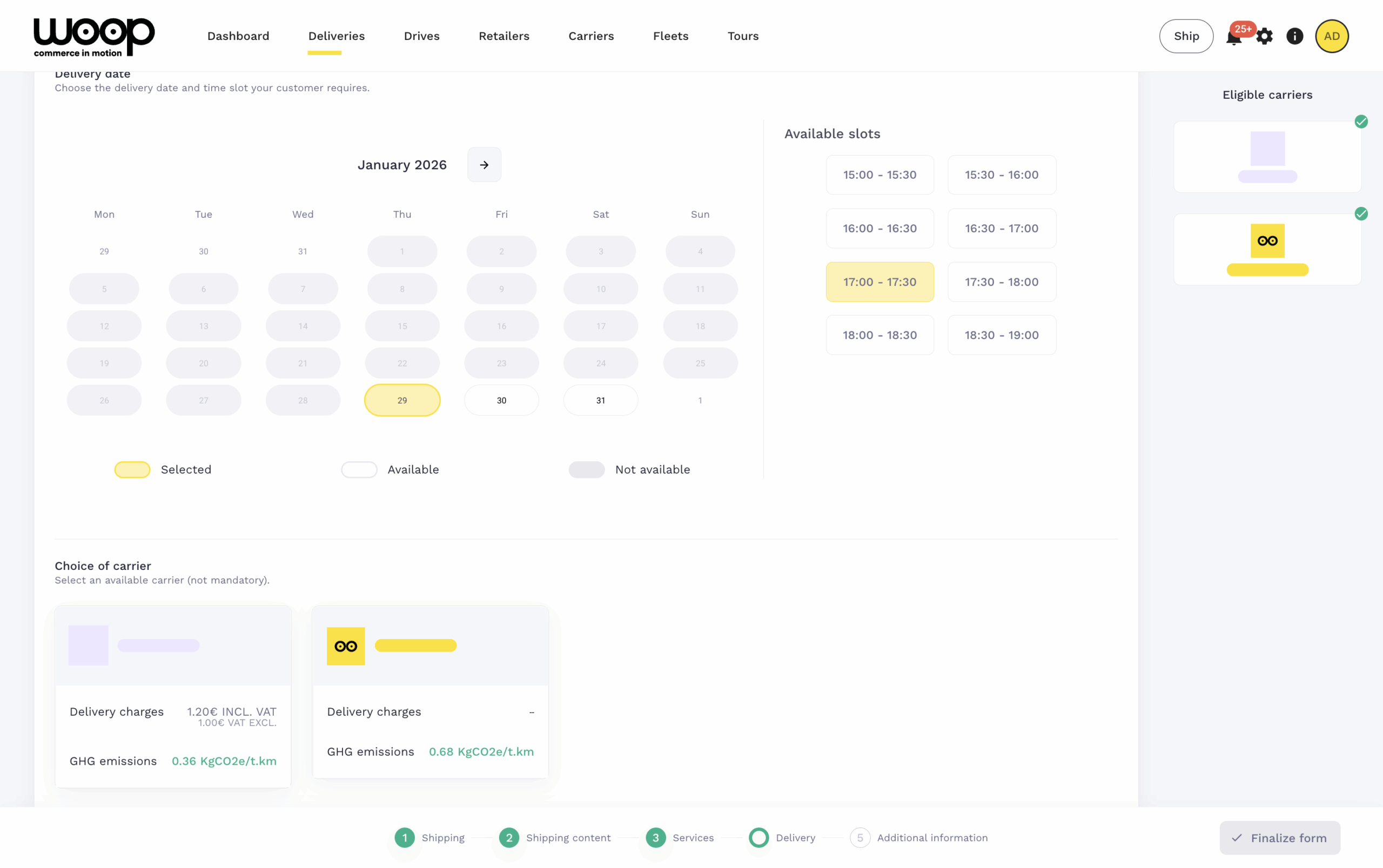 Woop conecta a las empresas con el ecosistema de red de entrega más amplio de Europa. Con más de 1.000 transportistas y 145.000 puntos de recogida y lockers en 50 países. Empresas líderes como Leroy Merlin, Castorama, Electro Dépôt, Auto Distribution y Soprema confían en Woop.